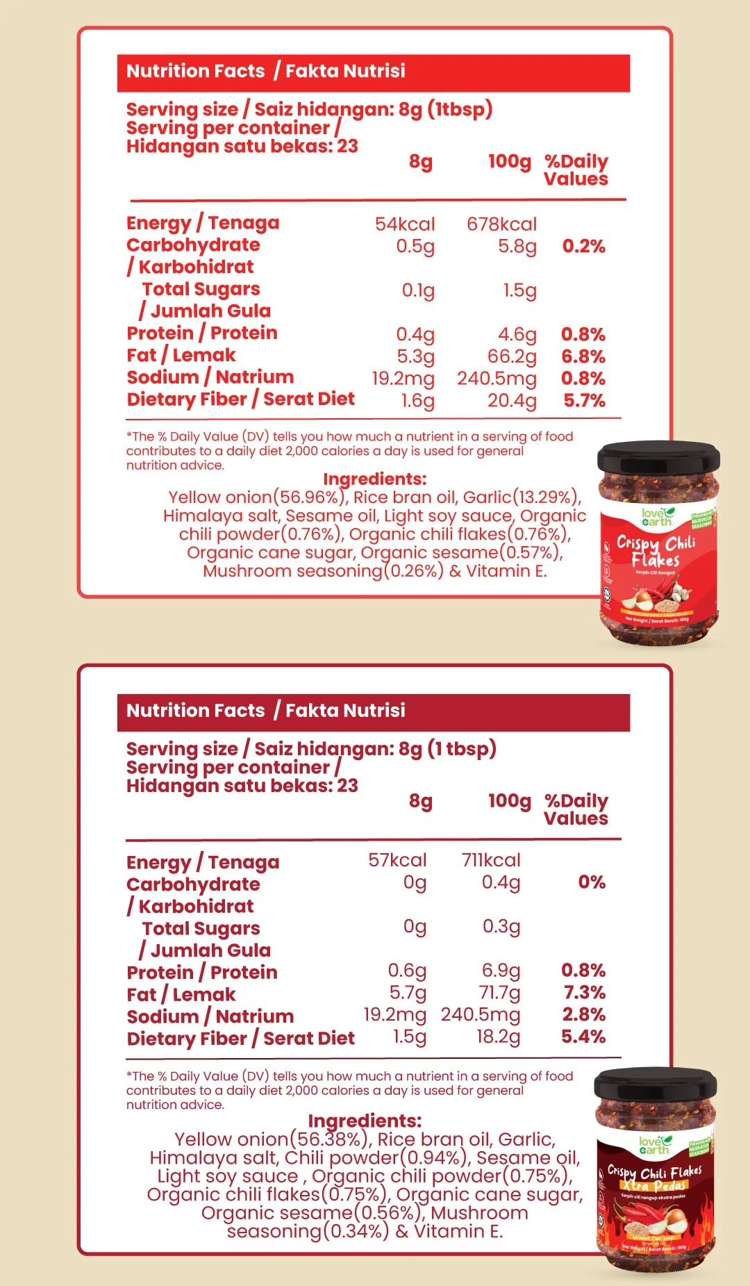 [180g] LVE LOVE EARTH Crispy Chili Flakes Xtra Pedas