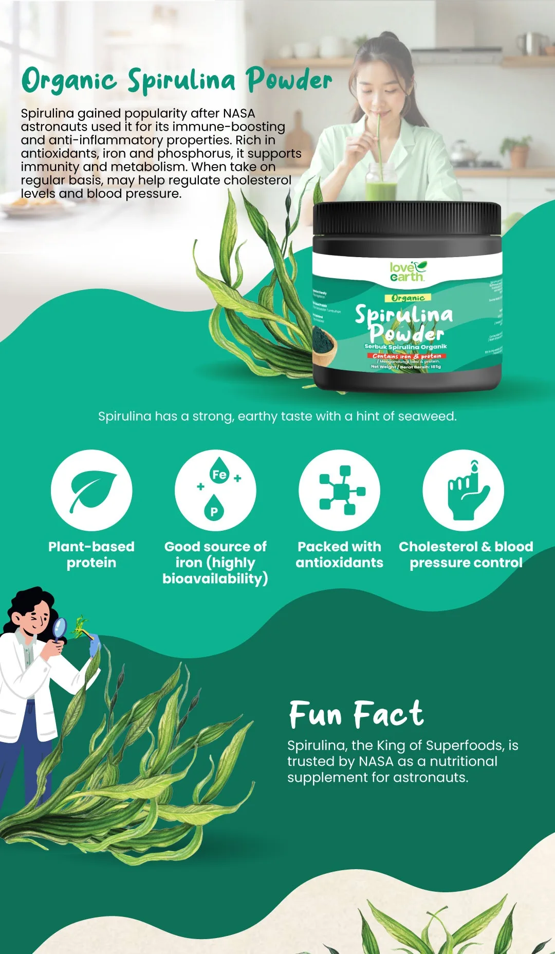 [185g] LVE LOVE EARTH Organic Spirulina Powder
