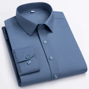 Men’s Smooth Slight Strech Bamboo Fiber Dress Shirt Without Pocket Comfortable Soft Regular Fit Long Sleeve Easy Care Shirts