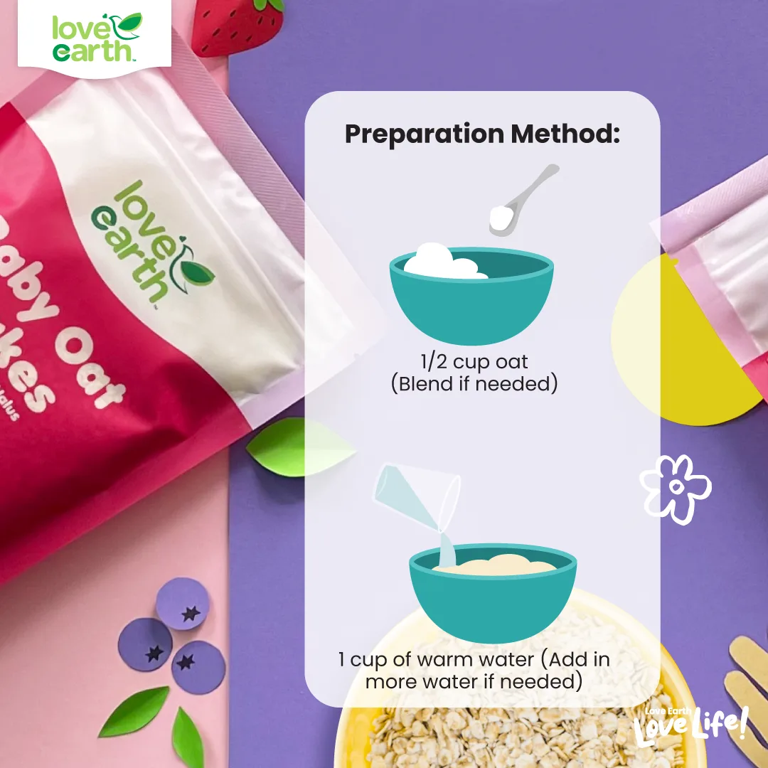 Introducing Love Earth’s Baby Instant Oat Flakes – the perfect whole grain option designed for babies beginning their solid food journey. Our oat flakes are meticulously crafted, ensuring a completely natural product, Packed with essential nutrients for their growth and development. No added preservatives, coloring, sugar, or chemicals. Carefully processed through steaming and thin rolling, these whole oat grains guarantee easy digestion and a delightful taste for your little one.
