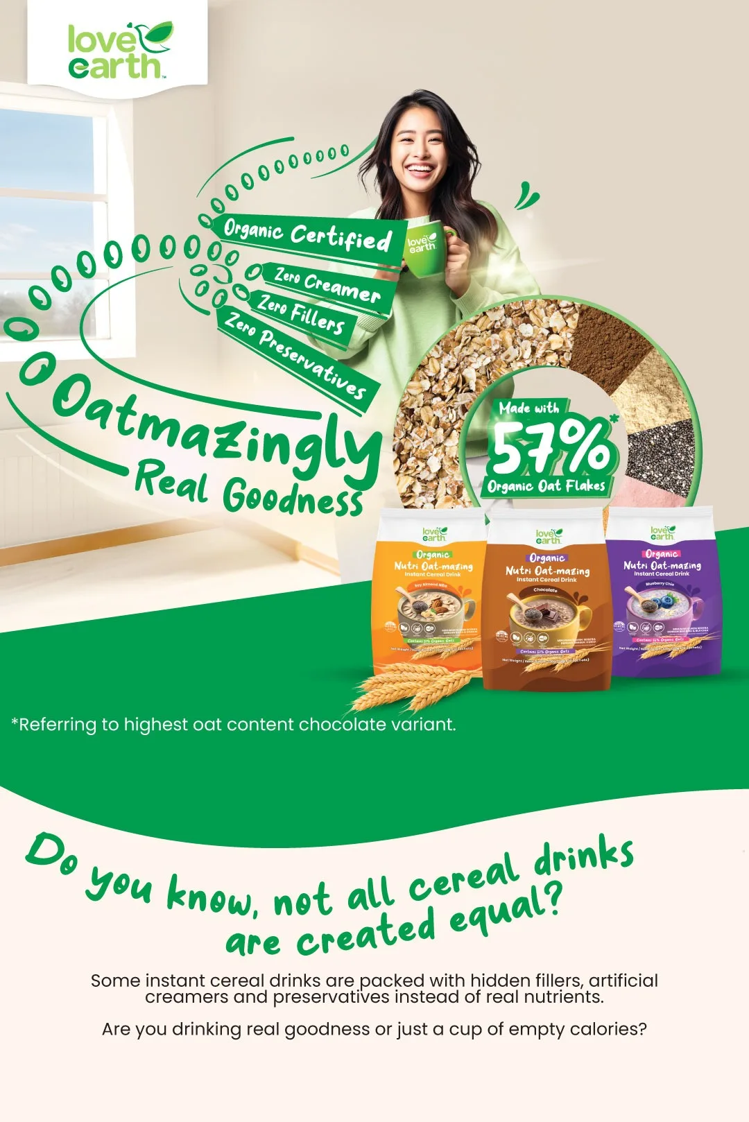 [500g] LVE LOVE EARTH Organic Nutri Oat-mazing Instant Cereal Drink Blueberry Chia 12 sachets x 28g