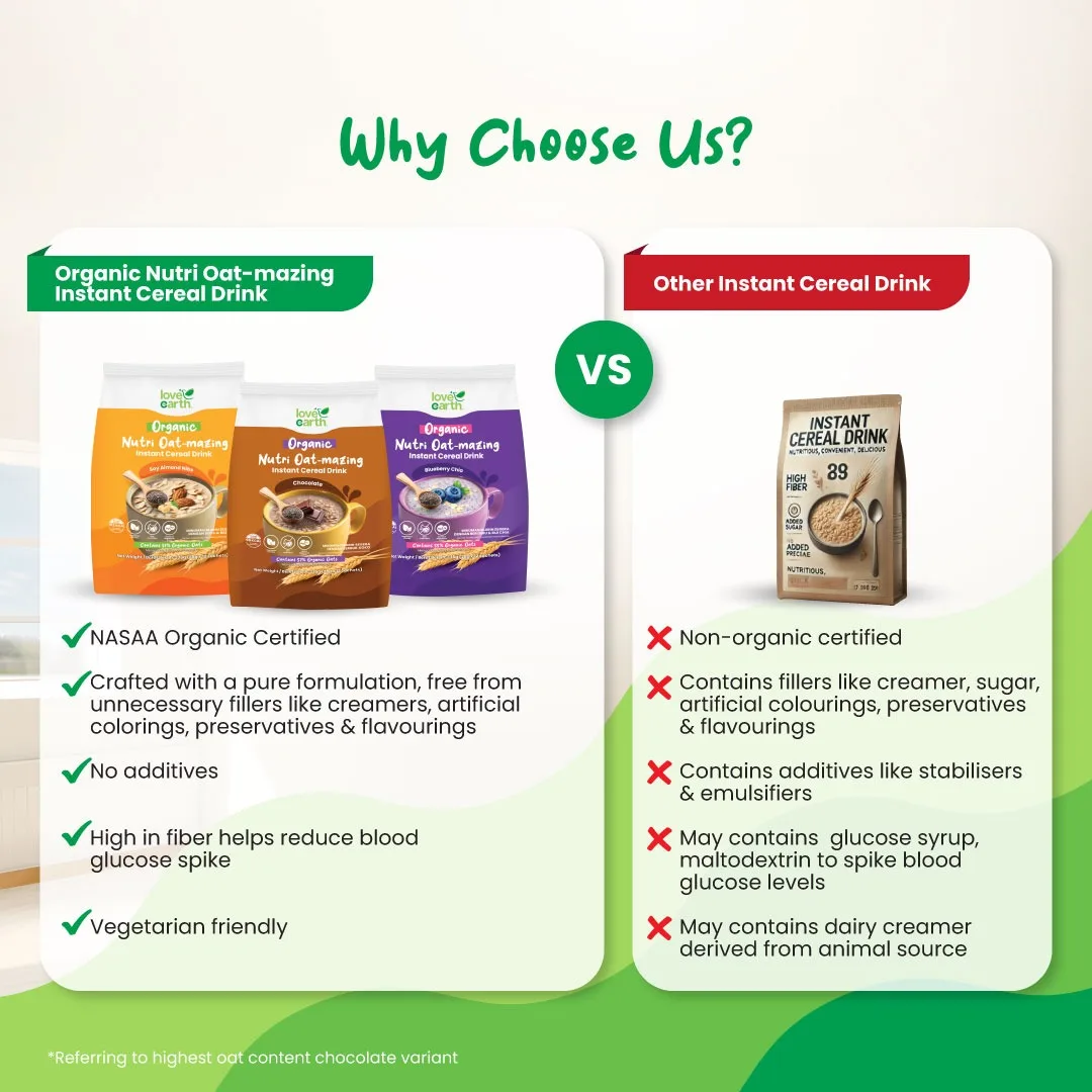 [500g] LVE LOVE EARTH Organic Nutri Oat-mazing Instant Cereal Drink Chocolate 12 sachets x 28g