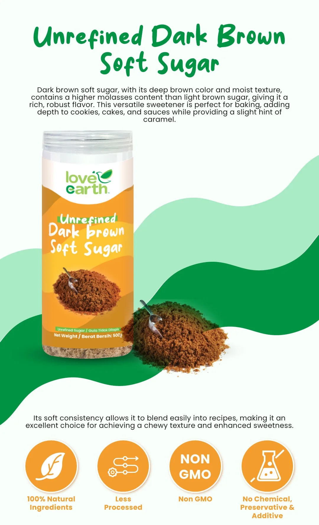 [500g] LVE LOVE EARTH Unrefined Dark Brown Soft Sugar