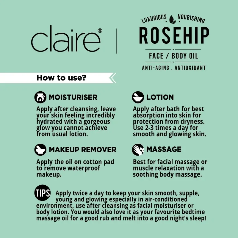 [50ml] CLAIRE Organics Rosehips Face and Body Oil