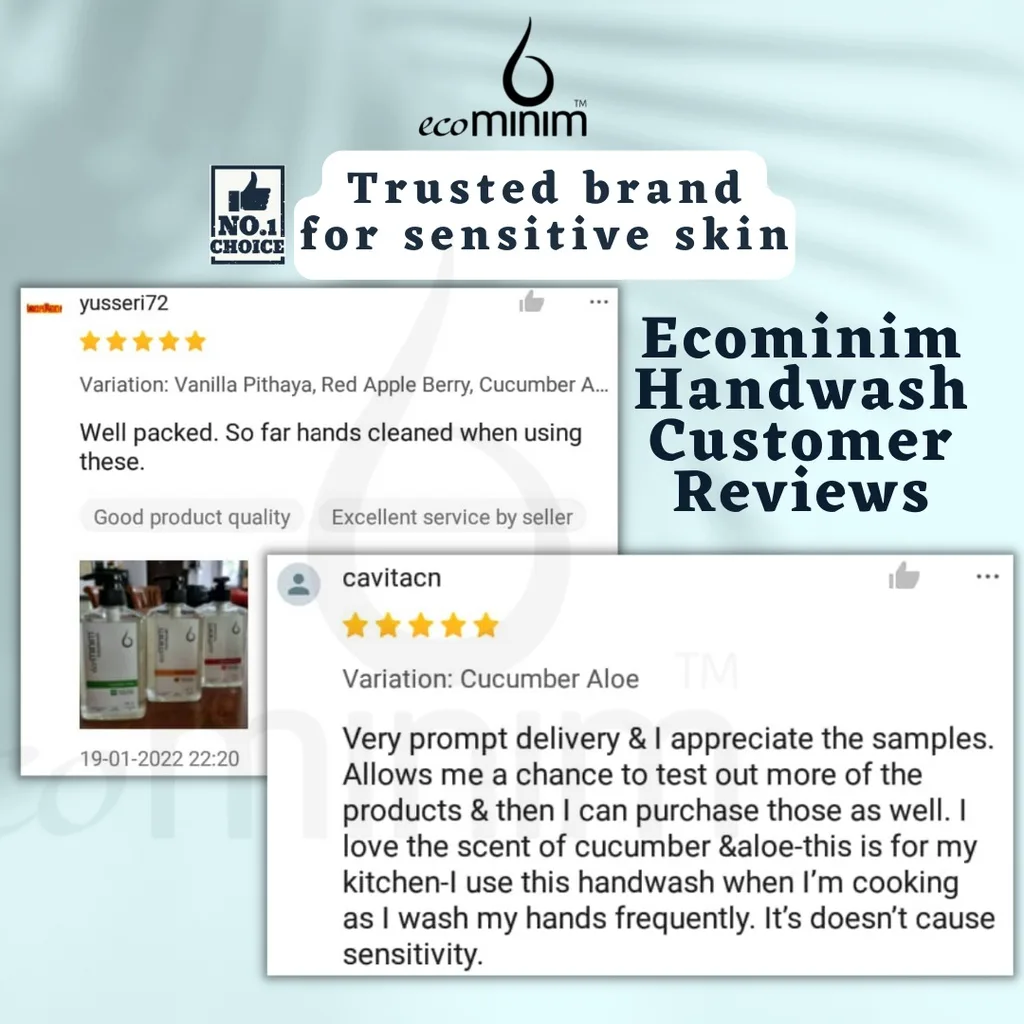 Ecominim Hand Wash Cucumber Aloe Liquid 500mL | Plant Based, No SLES/SLS, Skin Friendly