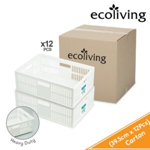 [12PCS]-EPLAS ECO LIVING CARTON DEAL 12Pcs-Pack Heavy Duty Rect. Space Saving Stackable Storage Basket,Bakul,ECO-1540-12