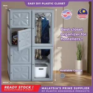 MAXONIC | 5/6 SLOTH PLASTIC FOLDABLE WARDROBE CABINET | HOSTEL BEDROOM | ALMARI LIPAT | PORTABLE | ANTBOX | WARDROBE