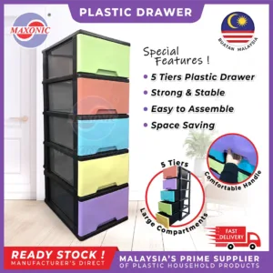 MAXONIC 5 TIER PLASTIC DRAWER | STORAGE DRAWER | LACI PLASTIK | PLASTIC CABINET | KABINET PLASTIK