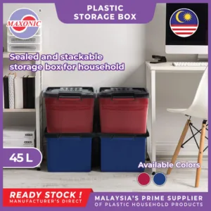 MAXONIC 45L PLASTIC STORAGE BOX | KOTAK SIMPANAN PLASTIK | STORAGE ORGANISER | STACKABLE | KOTAK SIMPANAN SERBAGUNA