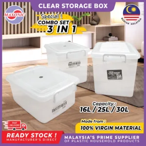 MAXONIC Combo Set 3 in1 Multipurpose Storage Container Box Plastic Transparent Drawer
