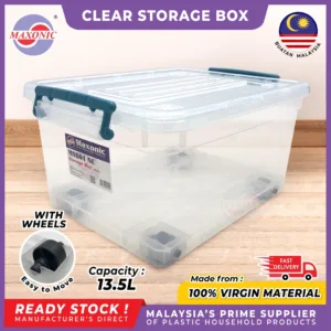 MAXONIC 13.5L STORAGE BOX WITH WHEEL | TRANSPARENT STORAGE BOX | TOY BOX | MULTIPURPOSE STORAGE BOX | KOTAK PLASTIK
