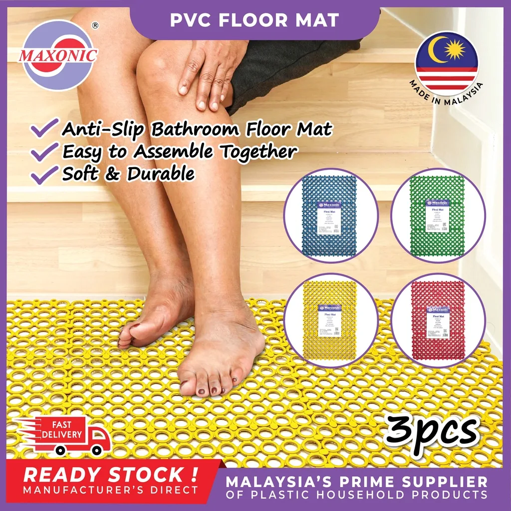 MAXONIC PVC FLOOR MAT (30cm x 45cm) 3PCS FLOOR MAT | ANTI SLIP KITCHEN/BATHROOM/POOL FLOOR MAT | TIKAR LANDI PVC