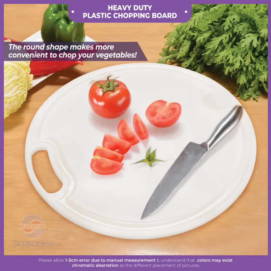MAXONIC ROUND PLASTIC CHOPPING BOARD | FOR FRUITS, VEGATABLE, MEATS CUTTING | VARIOUS SIZE | PAPAN PEMOTONG SAYUR