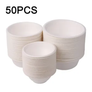 50PCS/Pack 220/350/500ml Disposable Dinnerware ECO-Friendly White Paper Bowl Disposable Tableware Outdoor Party Dining Supply