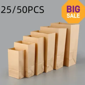 25/50pcs kraft paper bags brown exquisite gift bag recyclable takeout bags food baking packaging bag candy storage wholesale