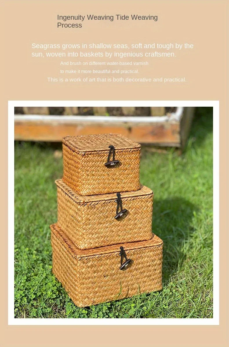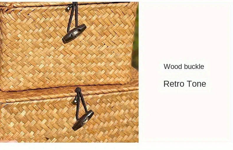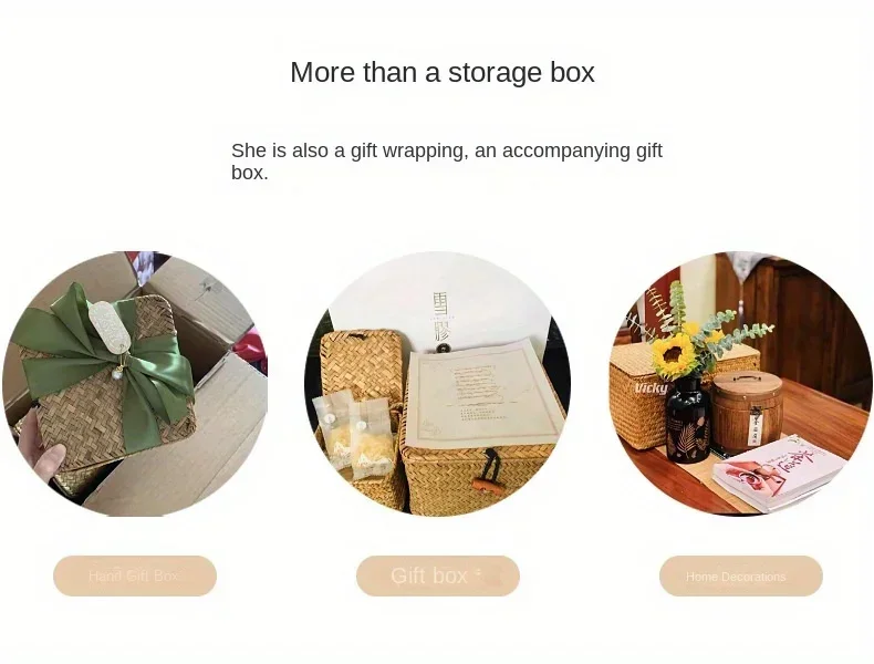 Practical Seaweed Woven Storage Box with Cover Gift Box Packaging with Hand Gift Box Desktop Sorting Clothes Storage Box
