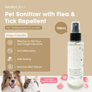 SHIBUI Pet Sanitizer With Flea & Tick Repellent, 2in1 Spray, Sakura Extract, Non-Toxic, Remove Bad Smell, Pet Safe 100ML