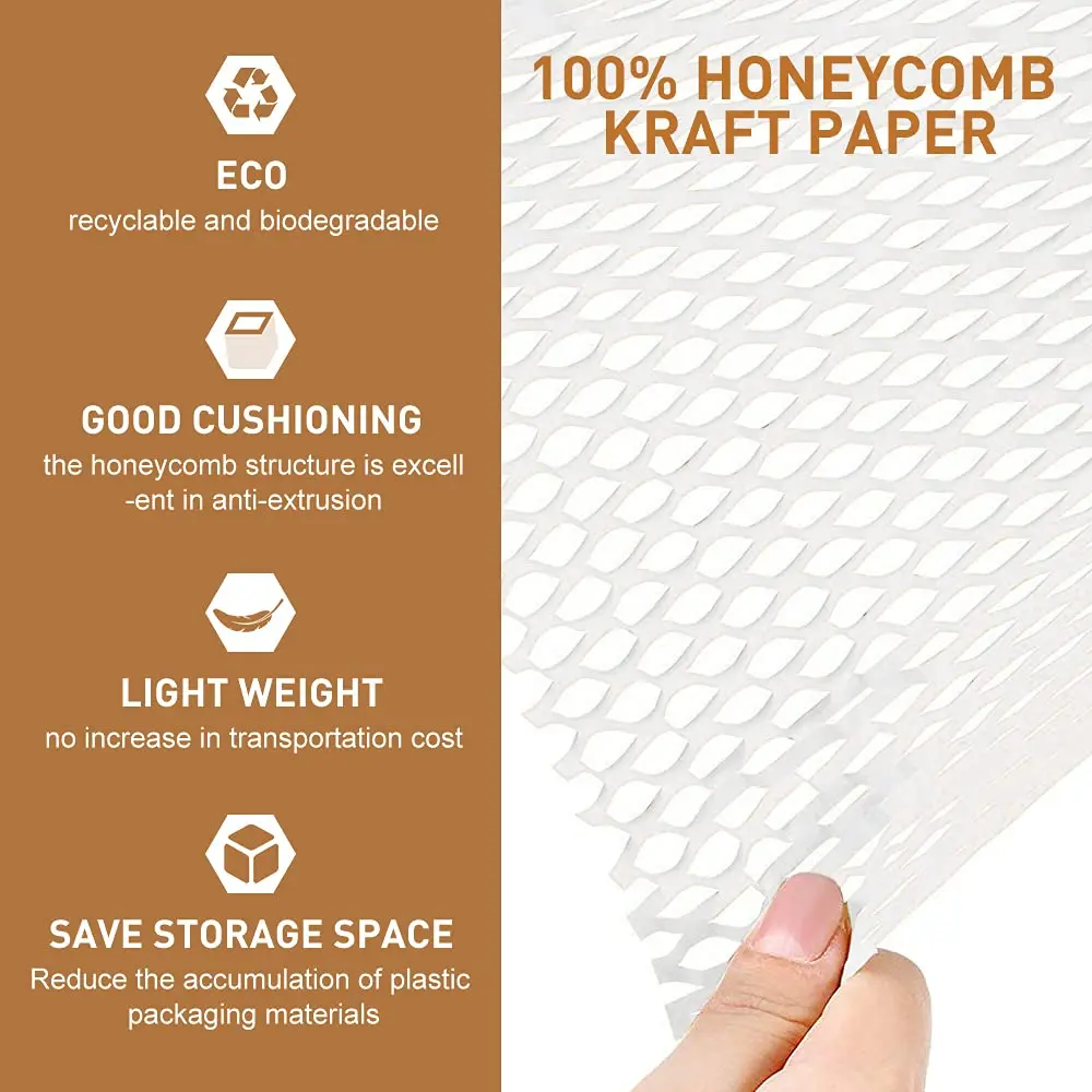 White Honeycomb Packing Paper Eco-friendly Cushioning Wrap Roll For Moving/Shipping Biodegradable Recyclable Kraft Paper